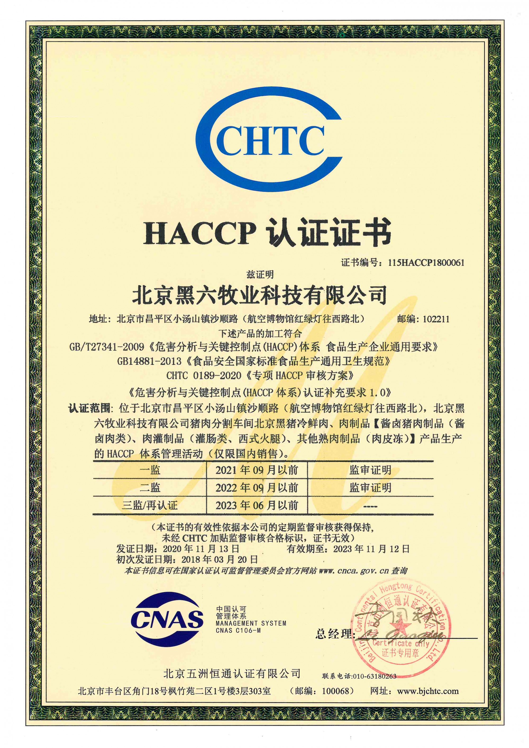 首頁 > 榮譽(yù)資質(zhì) > HACCP認(rèn)證證書