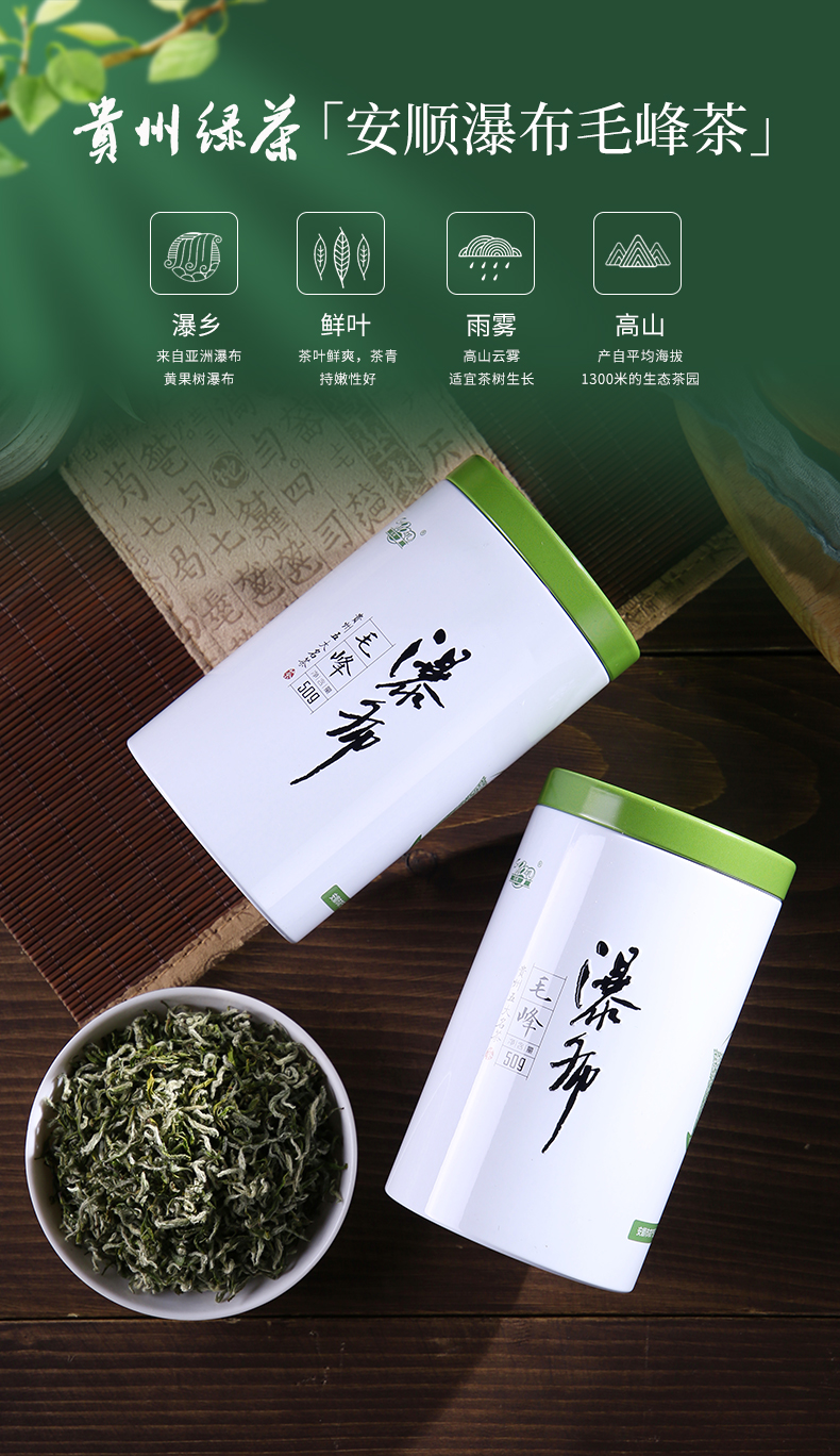 瀑布茶品牌是安順市人民政府主打茶葉品牌,省級重點打造區域公共品牌,屬貴州五大名茶,先后獲得獲“中國農產品區域公用品牌”、“貴州省著名商標”“貴州省名牌產品”等榮譽稱號近年來,在各級部門大力推動下,瀑布茶品牌不斷發展壯大。截止目前,現有瀑布茶品牌加盟企業23家,輻射茶園面積200000余畝其中綠色食品認證茶園基地面積7000余畝,有機食品認證基地面積2500畝擁有“瀑布毛峰”、“瀑布翠芽”“瀑布紅茶”、“瀑布翠龍”等產品,多次獲得“中綠杯”、“中茶杯”、“華茗杯”大獎;分別榮獲14屆中國國際農產品交易會金獎18屆中國綠色食品博覽會金獎“黃山杯”首屆全國傳統名茶產品質量特別金獎、安順十大旅游商品等殊榮及稱號。