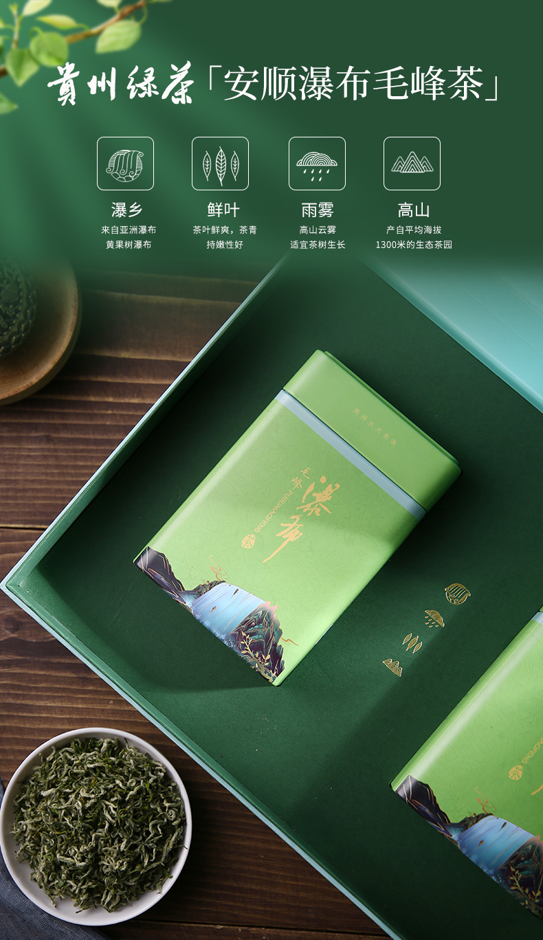 貴州綠茶 安順瀑布茶 2021新茶 特級毛峰200克禮盒裝