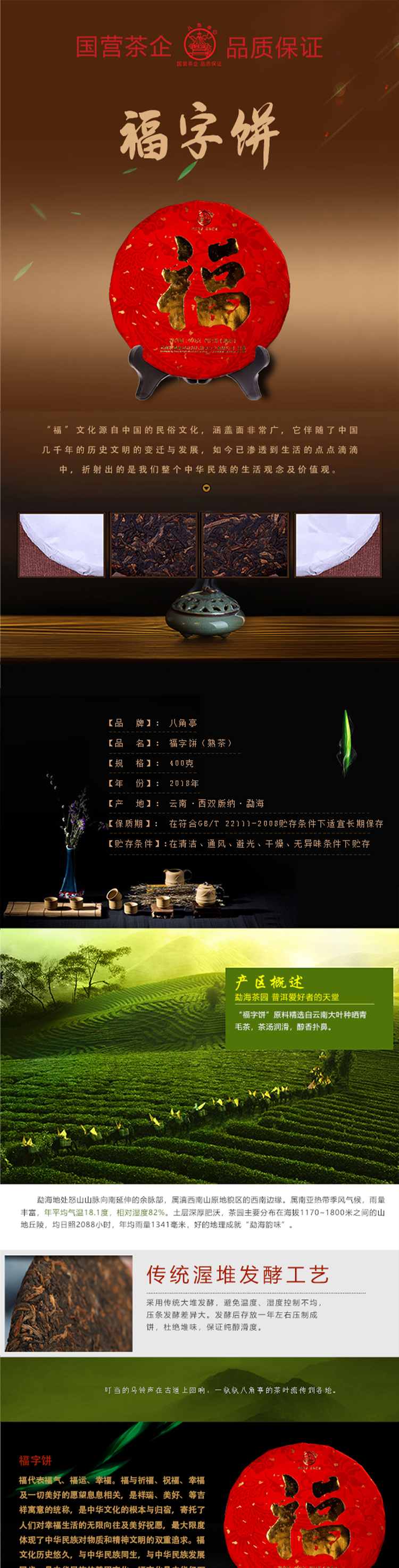 八角亭茶業原為黎明農工商聯合公司(黎明農場)下屬茶葉加工組,始于一九六四年,從事茶葉產品開發生產五十余載,一九八四年建成標準化工廠,二00一年開始生產普洱茶,截止到2013年,公司累計生產各種普洱茶數百個品種共12000余噸。