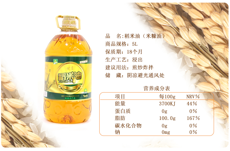 皖墾稻谷油5L/桶裝富含谷維素米糠油植物炒菜食用油家用